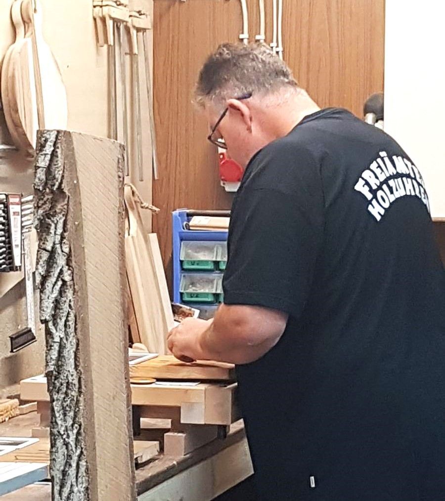 Als gelernter Schreiner verarbeite ich überwiegend heimische Hölzer wie Tanne, Douglasie sowie Altholz aus Tanne und Lärche. Ab und zu finden auch edlere Hölzer wie Nussbaum ihren Weg in meine Arbeiten.